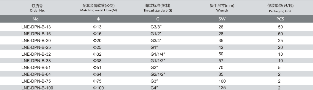 產(chǎn)品名稱: LNE-DPN-B 不銹鋼內(nèi)牙式接頭