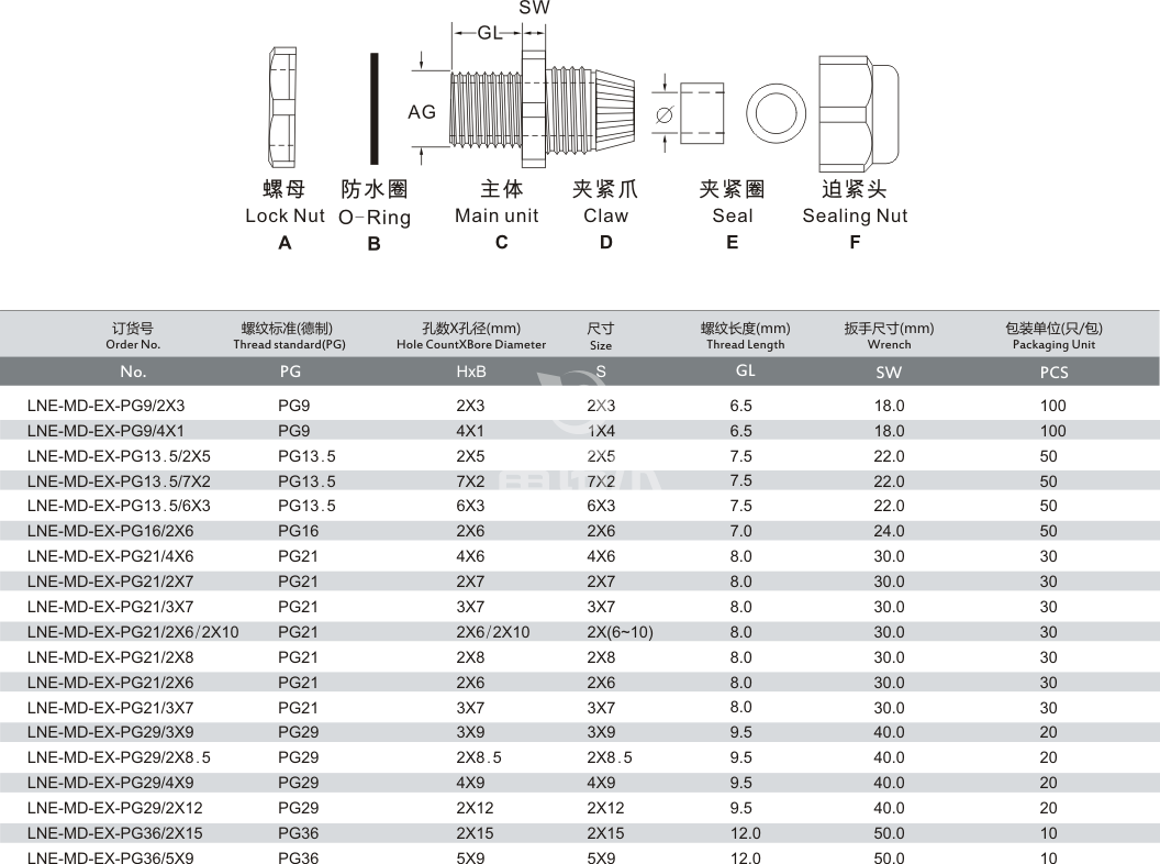 產(chǎn)品名稱:LNE-MD-EX 黃銅多孔電纜防水接頭
