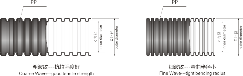 產品結構:內部和外表均為波浪型。