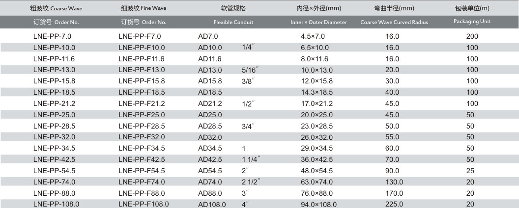 產品名稱:LNE-PP 阻燃聚丙烯軟管