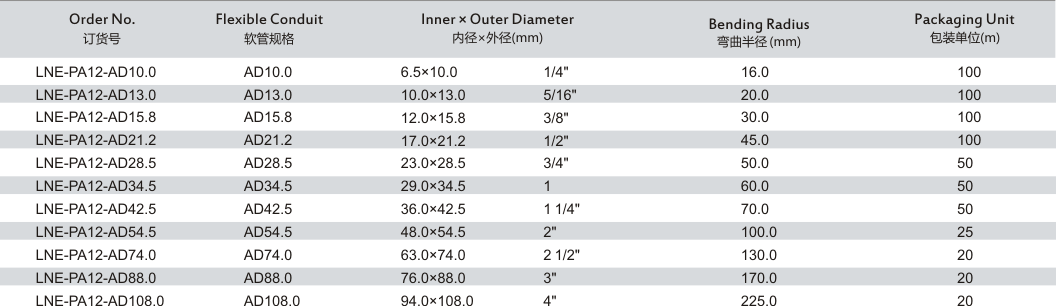產(chǎn)品名稱(chēng): LNE-12 標(biāo)準(zhǔn)尼龍12軟管