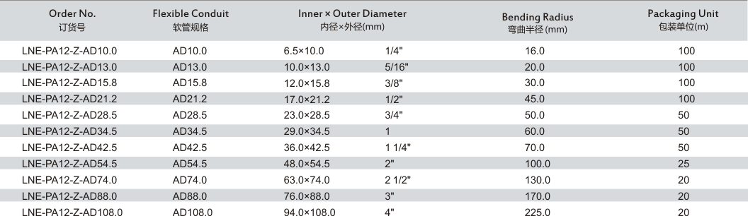 產(chǎn)品名稱(chēng):LNE-12-Z 阻燃尼龍12軟管
